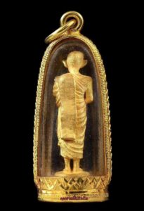 龙婆卡贤纯金立尊自身,在南邦人民眼中龙婆卡贤是一位不为名利,伟大无私,功德无量的师傅。龙婆卡贤的出现也验证了古巴洗威猜寓言的真实“南邦将有一位功德无量的人出现”。龙婆卡贤生前为过无数人祈祷以及传授人生哲理。而龙婆卡贤修行的避险与养生法门更是给很多龙婆卡贤佛牌的佩戴者带来了福音。而如今师傅遗体被供奉在庙里,并且没有腐化,这点也证明了师傅的修行。如今师傅的寺庙依然很普通,其因是师傅把父母的遗产,以及发行佛牌所带来的善款都全部捐献给了当地的学校以及医院的建设中!